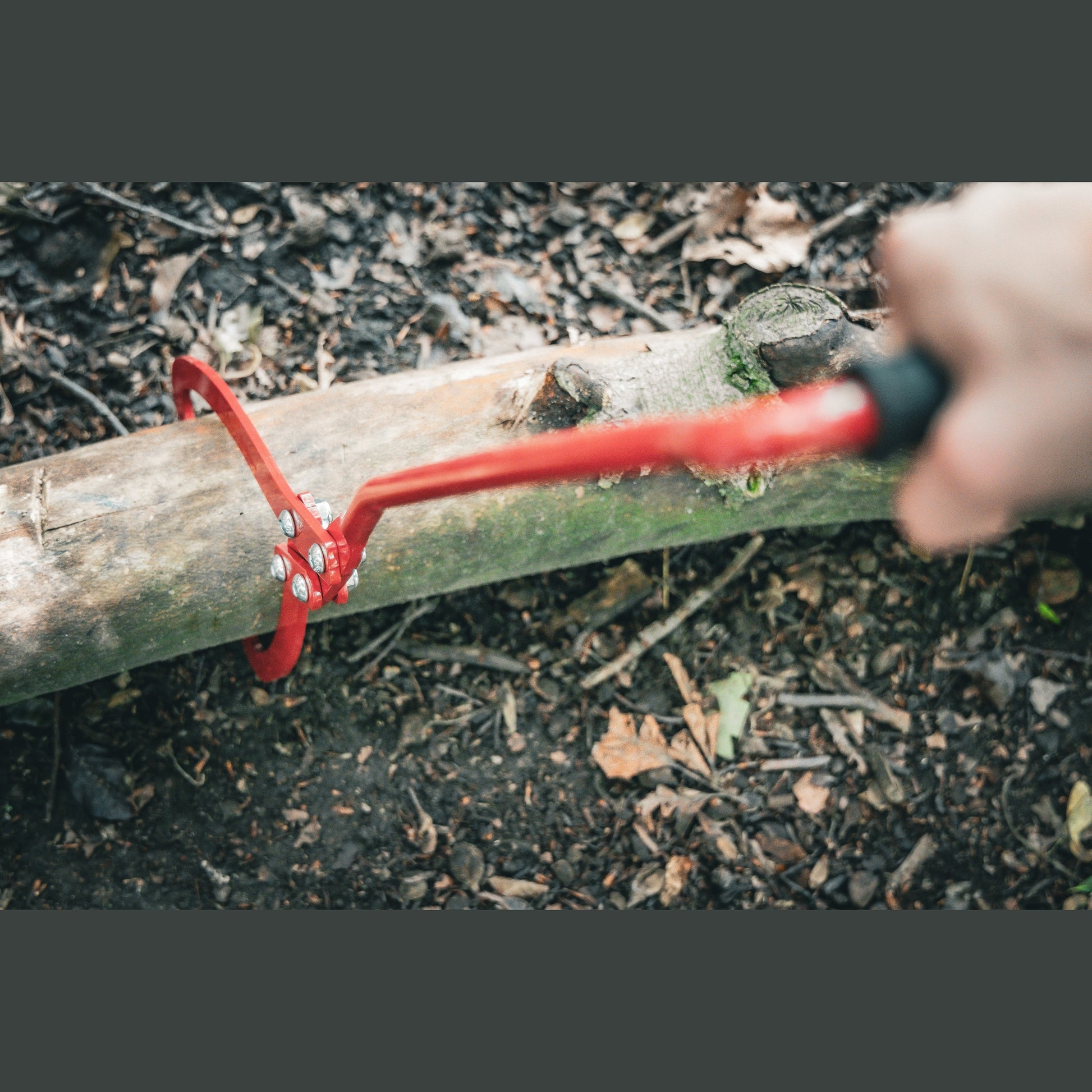 Handtaget är vridet 90° och har halkskydd för säkert grepp. Den genomtänkta kroks- och saxgeometrin säkerställer ett tryggt och stabilt lyft. Tack vare den vridna handtagspositionen kan stockar dras med upprätt kroppshållning. Handtaget är placerat i rät vinkel mot saxen för ergonomisk användning.