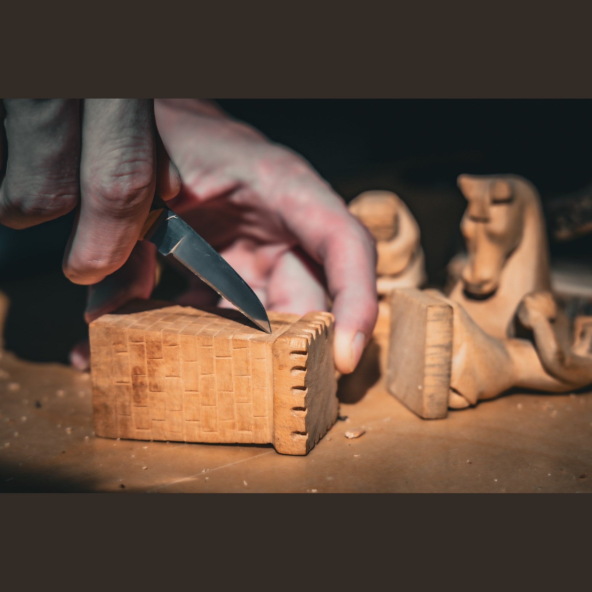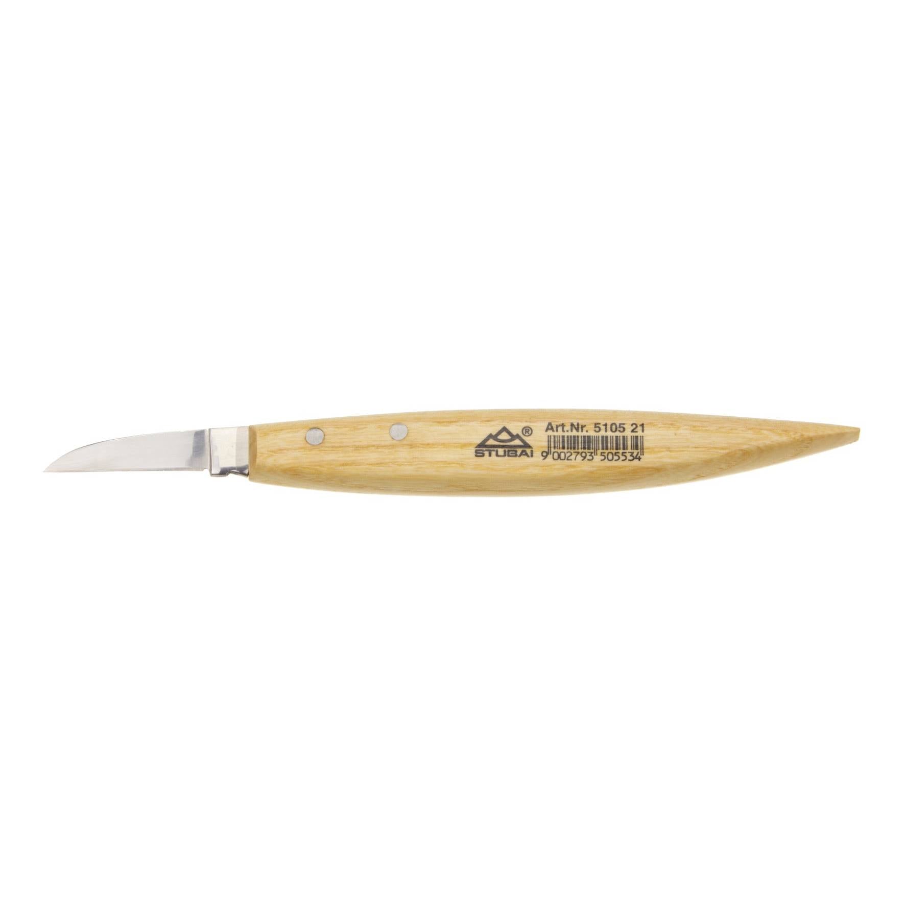 En precisionsslipad snidkniv med rak klinga, särskilt framtagen för att skära rena spår och detaljer i trä. Den vassa eggen med en slipvinkel på 20–30° ger kontrollerade snitt och hög noggrannhet i arbetet. Handtaget är tillverkat av lackad bok, vilket ger både ett stabilt och bekvämt grepp under längre arbetspass.