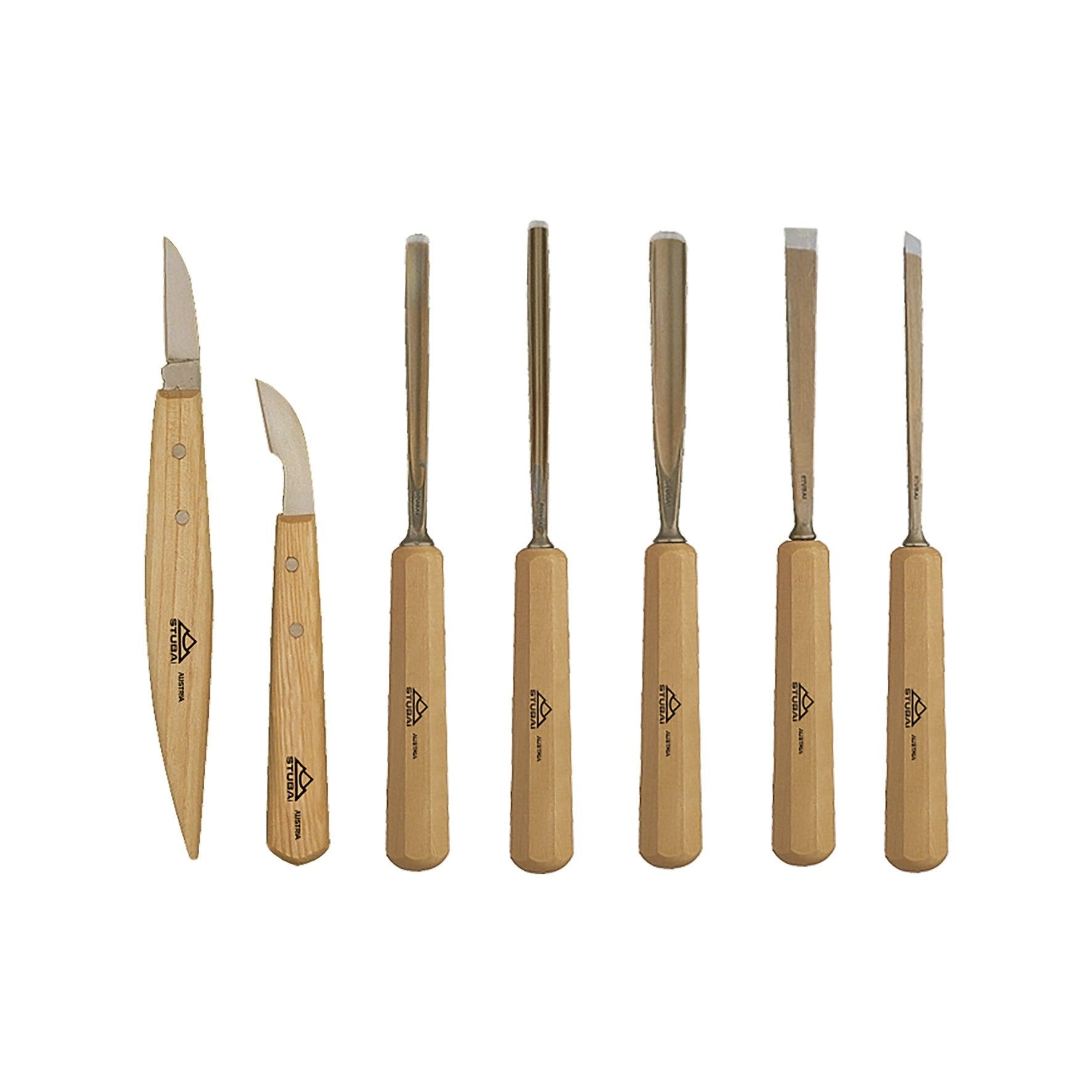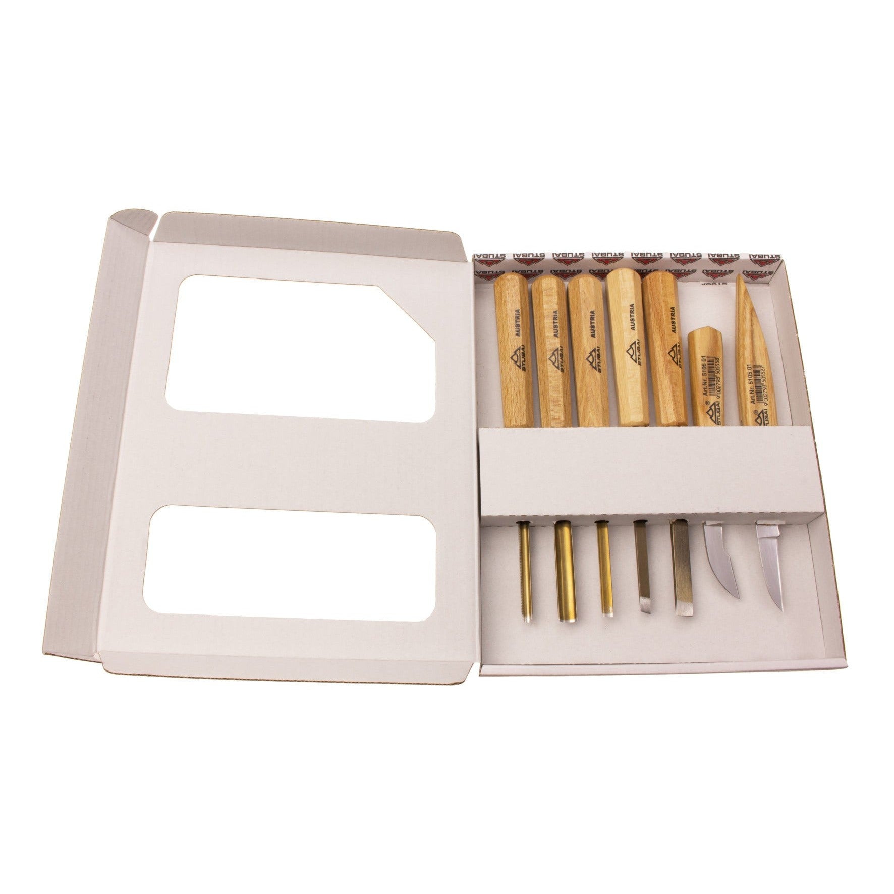 Ett smidigt och komplett set för detaljerade träarbeten, perfekt för finsnideri och mönsterskärning. Levereras i kartong och innehåller raka skärjärn och snidknivar för raka och böjda insnitt.